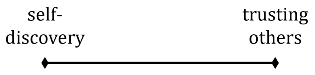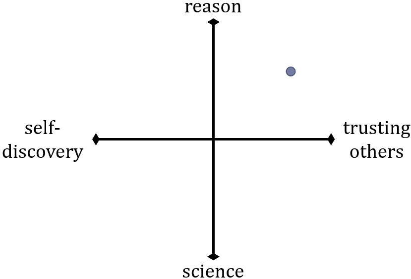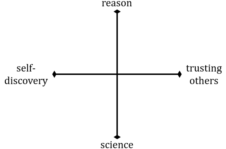 Starting with this post,* I want to examine first that horizontal scale: learning through self-discovery v. learning through our trust in others.